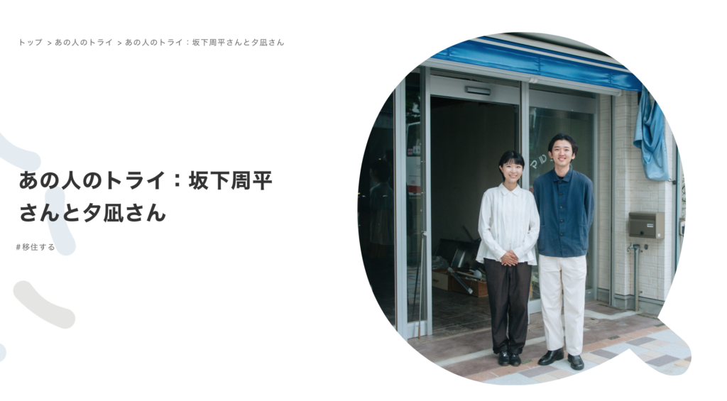 今回登場いただくのは、2025年2月に夫婦で富山県から岡崎市へ移り住んだ、坂下周平さんとアングルスタッフでもある夕凪さんです。