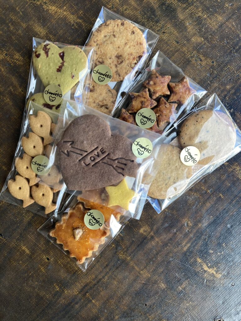 国産小麦やきび糖、少しの天然塩。素材の旨みを引き出した、心にやさしく響くクッキーが並びます。バレンタインにちなんだ、チョコレートを使ったお菓子も。